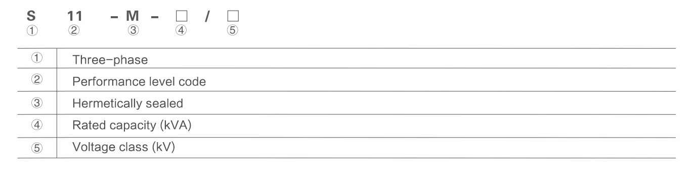 | Model | Rated Capacity (kVA) | Vector Group | Voltage Combination (kV) | No-Load Loss (W) | Load Loss (W) | No-Load Current (%) | Impedance (%) | ||